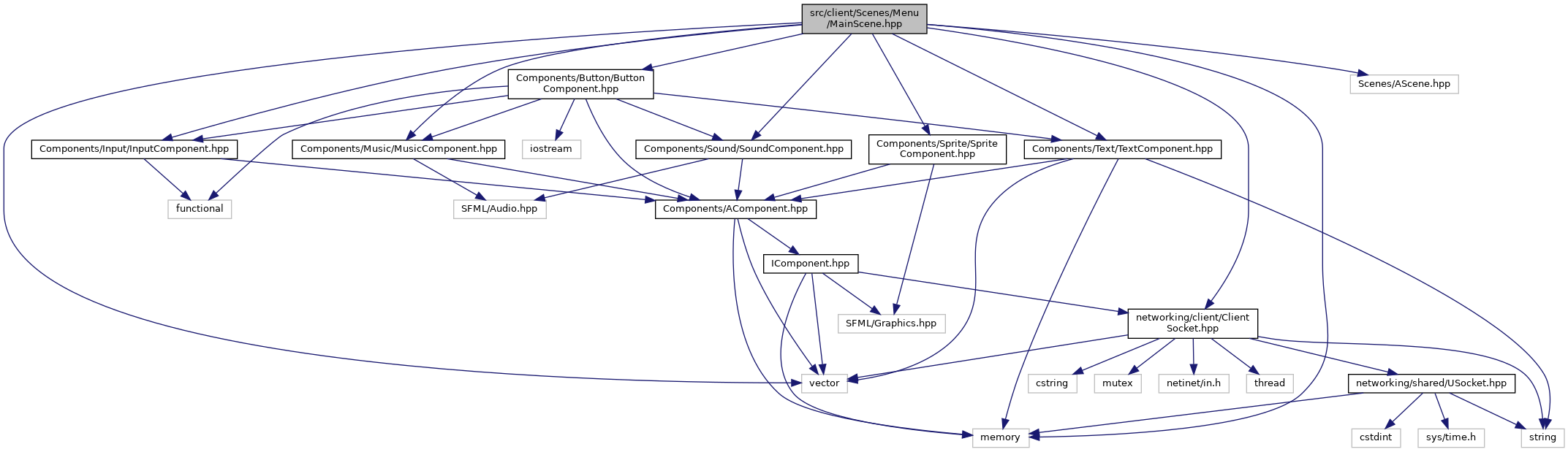 #include "Components/Button/ButtonComponent.hpp"#include "Components/Input/InputComponent.hpp"#include "Components/Music/MusicComponent.hpp"#include "Components/Sound/SoundComponent.hpp"#include "Components/Sprite/SpriteComponent.hpp"#include "Components/Text/TextComponent.hpp"#include "Scenes/AScene.hpp"#include "networking/client/ClientSocket.hpp"#include <memory>#include <vector>