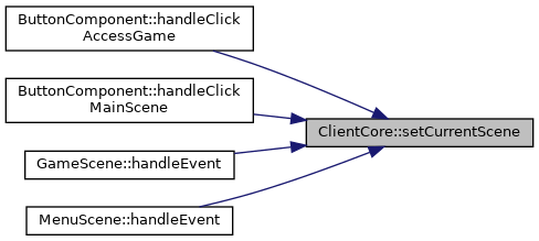 Referenced by ButtonComponent::handleClickAccessGame(), ButtonComponent::handleClickMainScene(), GameScene::handleEvent(), and MenuScene::handleEvent().